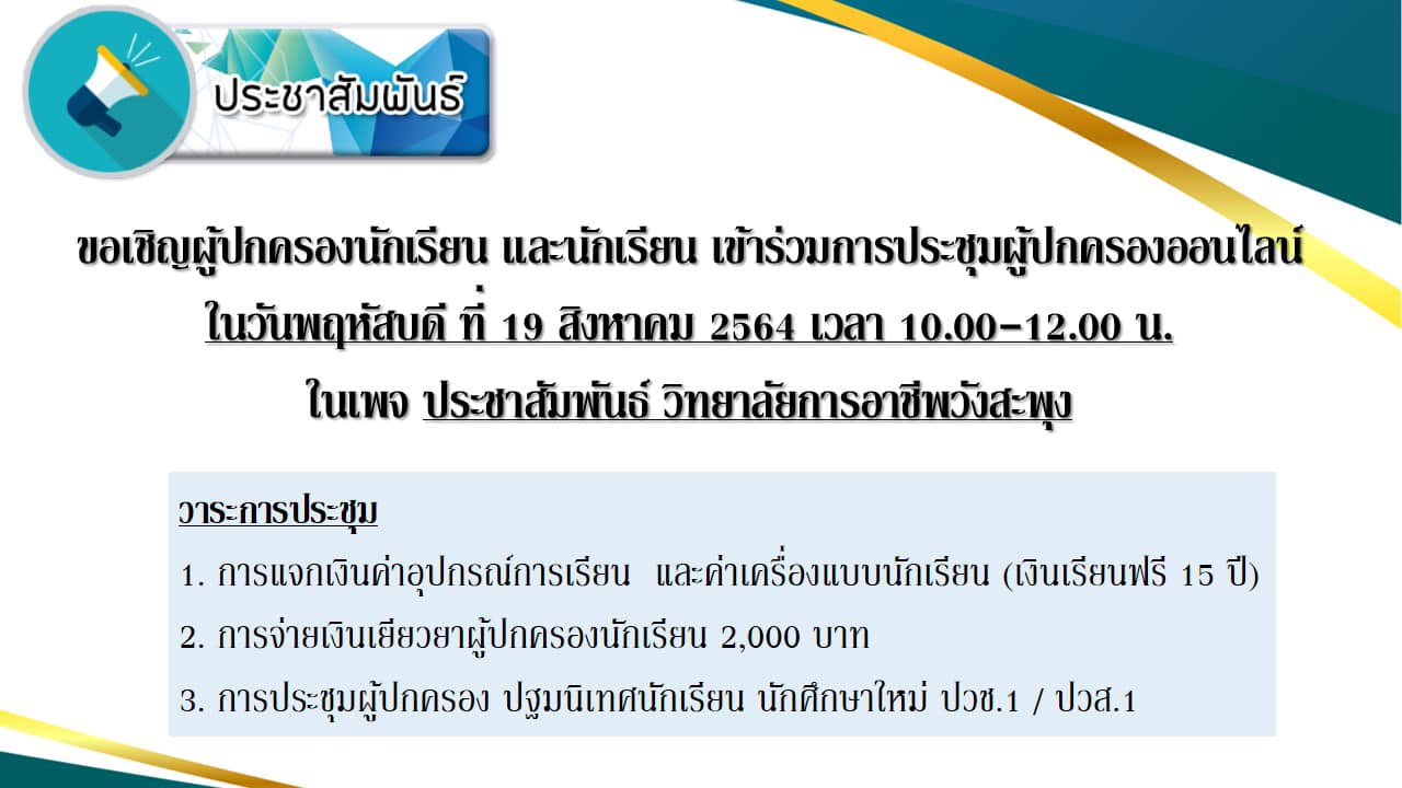 การประชุมผู้ปกครองผ่านระบบออนไลน์ ภาคเรียนที่๑/๒๕๖๔ เนื่องจากสถานการณ์โควิดยังระบาดในพื้นที่