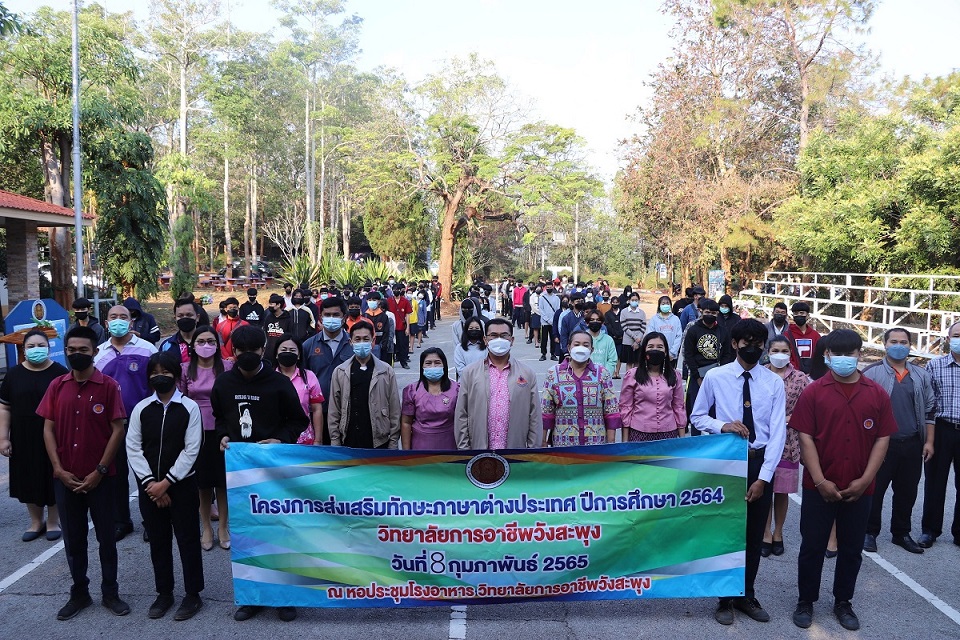 โครงการส่งเสริมทักษะภาษาต่างประเทศ ประจำปี ๒๕๖๕ วันที่ ๘ ก.พ.๒๕๖๕ ณ.ลานกิจกรรมหน้าเสาธง
